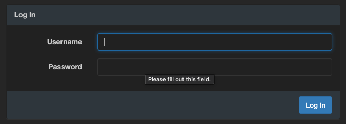 Clicking the top right Log In button will prompt you to Log In: