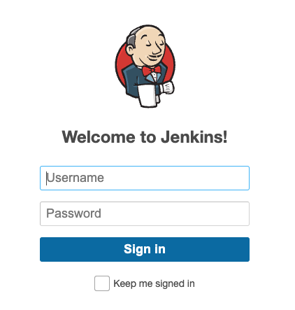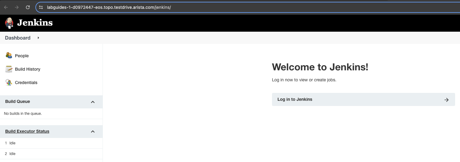 The Jenkins link will launch a virtual instance of the Jenkins automation platform. When you click it you will see the main Jenkins page, but will need to log in by clicking the Login to Jenkins banner: