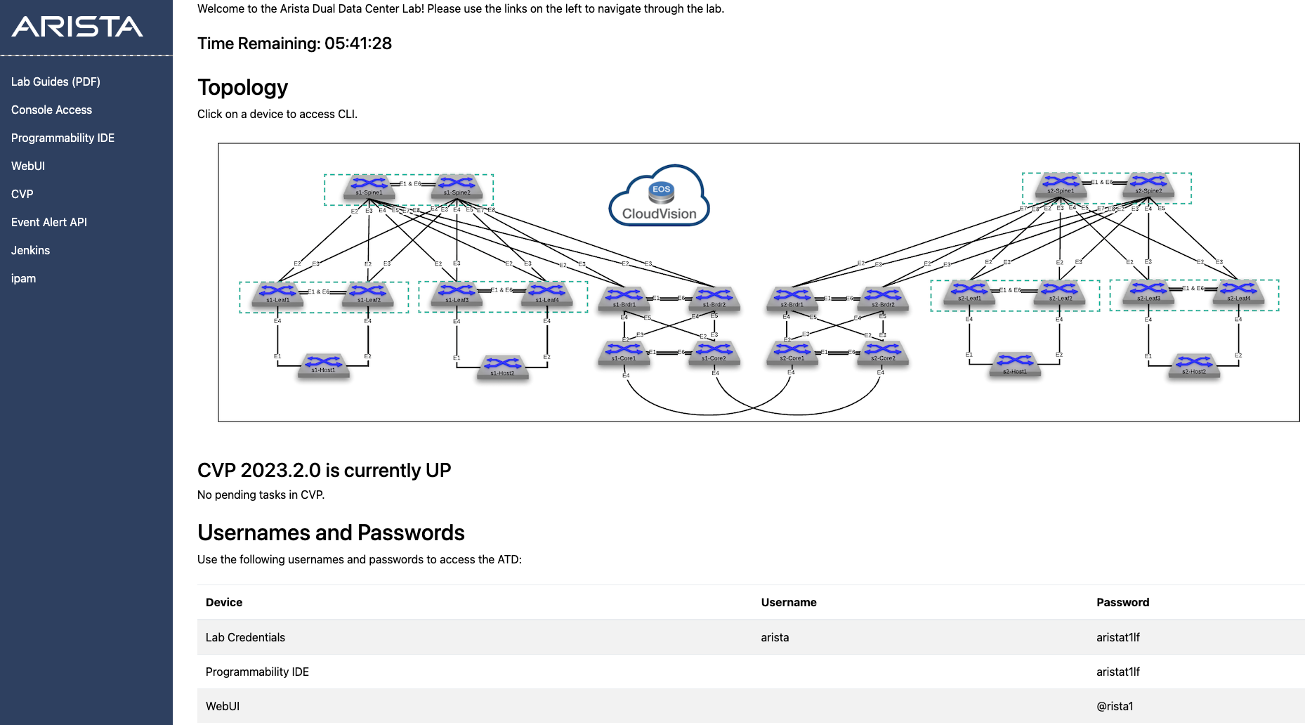 Lab Credentials: Used for all switches, CVP, Jenkins, and ipam