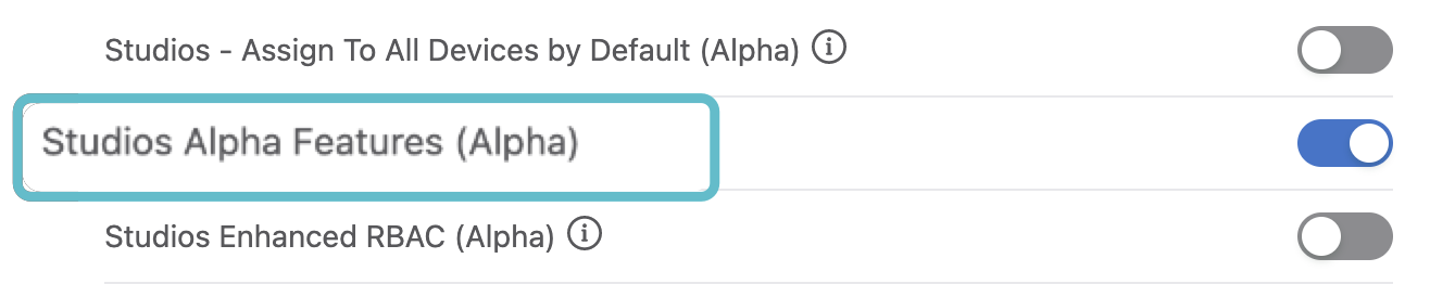 Scroll to the bottom of Features and enable Studios Alpha Features.