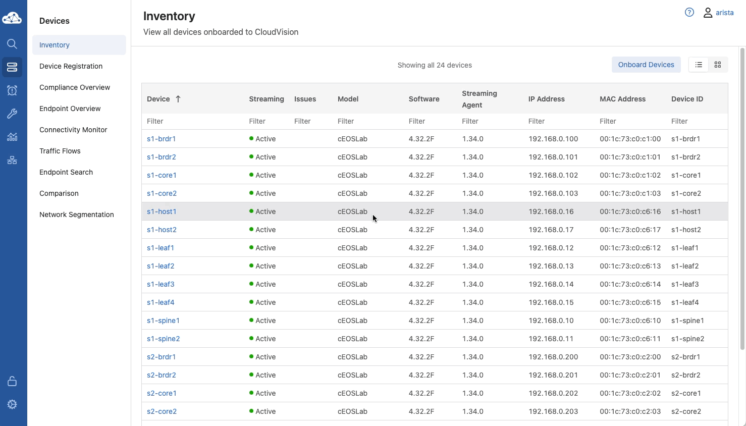 Devices managed by CloudVision Studios must be onboarded before any configuration changes take place. This allows users to define a subset of their devices to be managed by Studios if they wish. This initial step is done via. the built-in Inventory and Topology Studio.