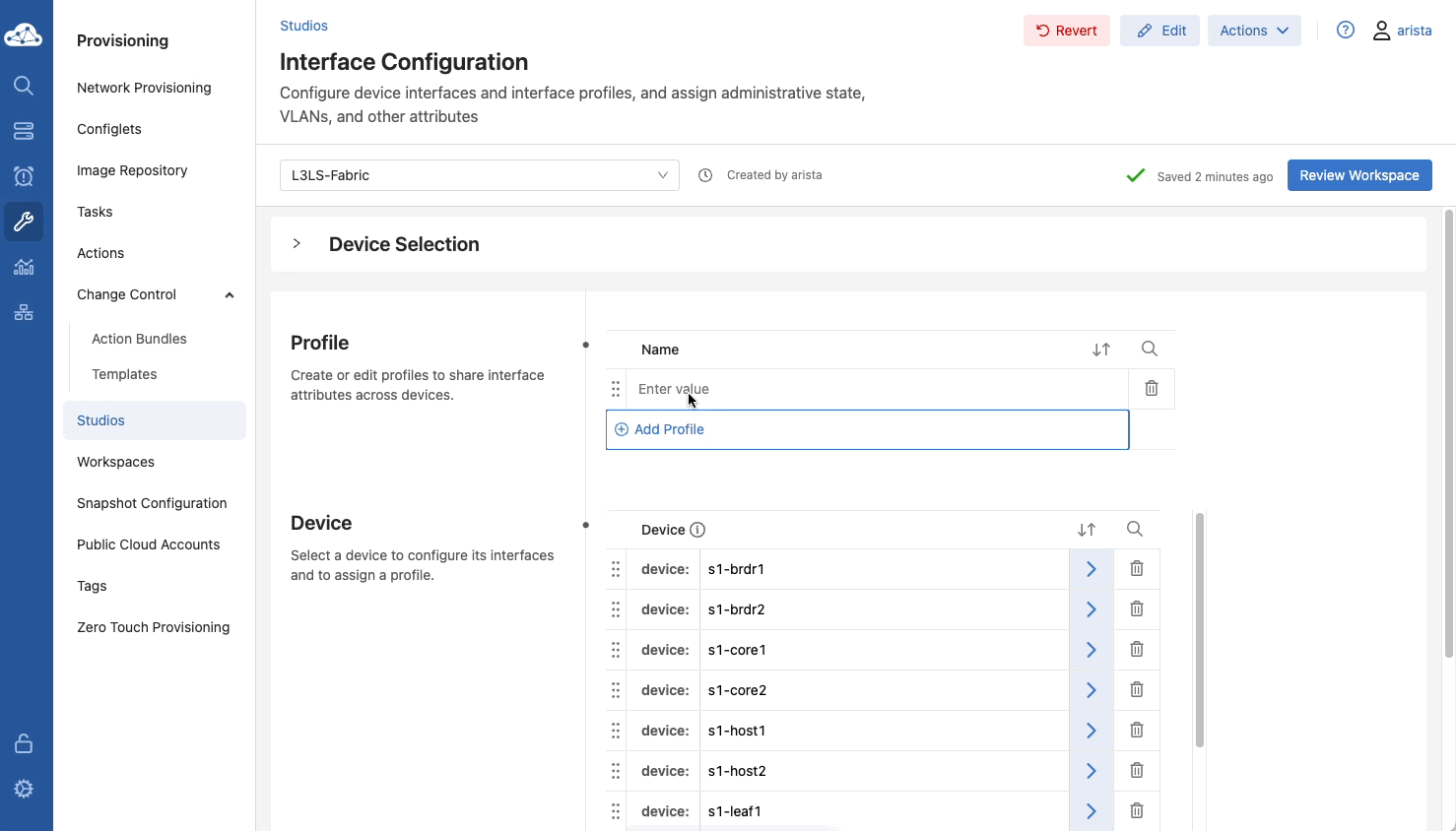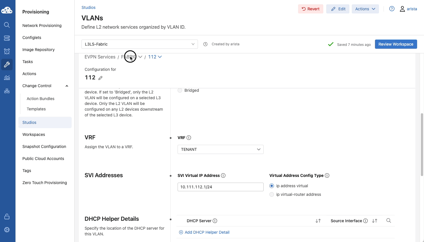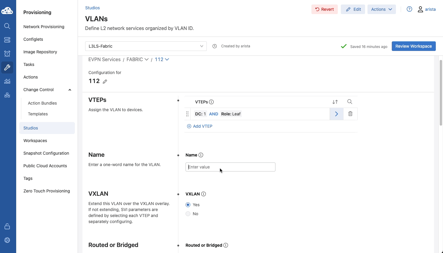 The goal of this lab is to get hands-on experience with CloudVision Studios (1) , a built-in network provisioning feature of Arista CloudVision.