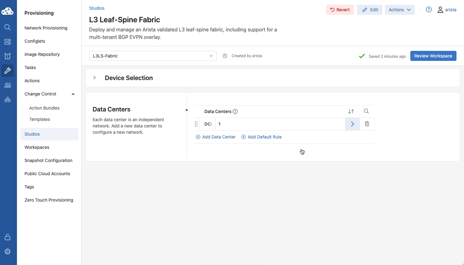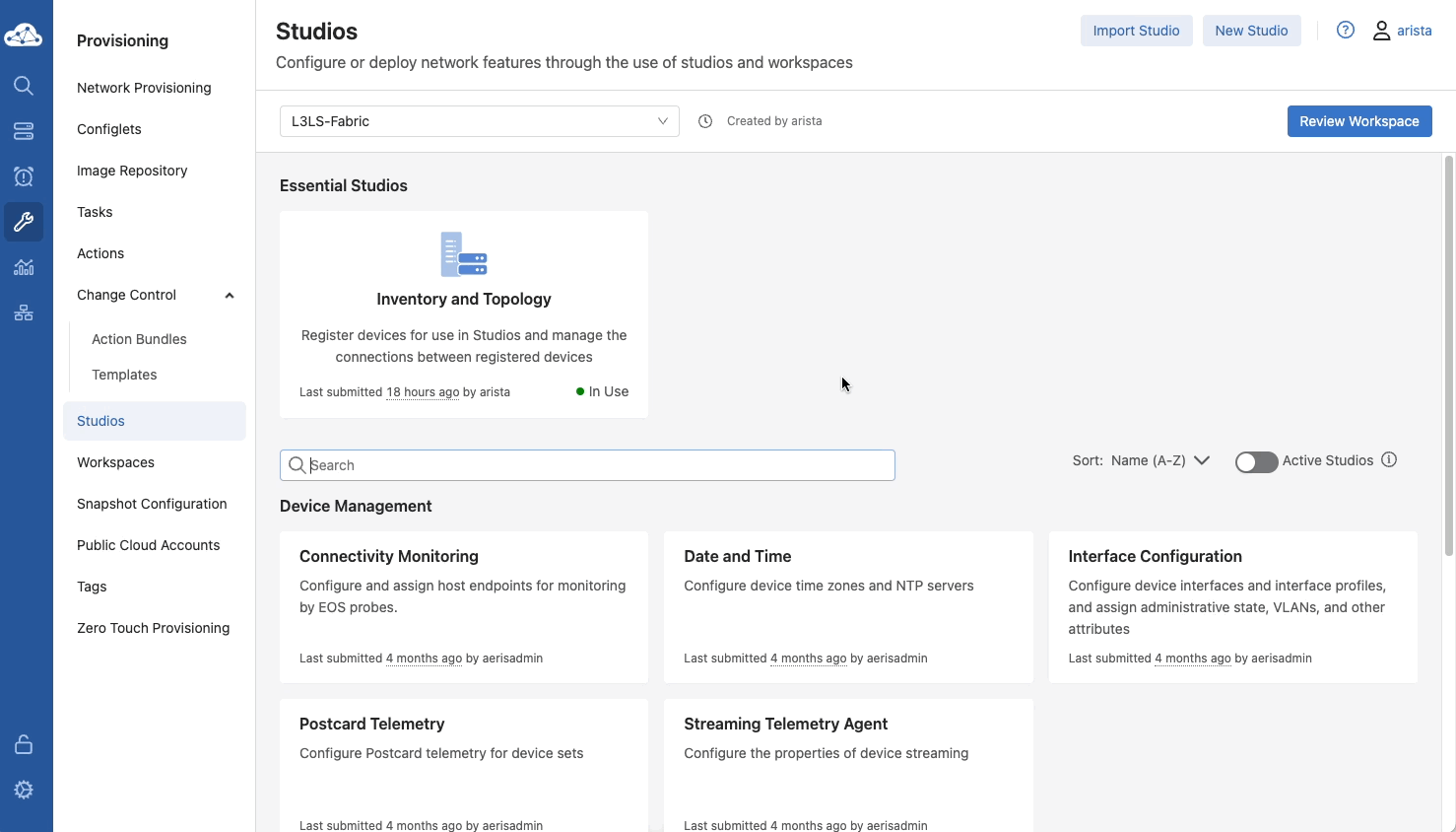 Arista provides many out-of-the box Studios. However, users can also build custom Studios to deploy and manage networks in any manner they desire!