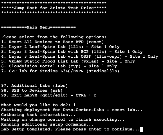 Lab Complete! You have successfully deployed a Layer 3 leaf and spine network with MLAG, BGP, EVPN, VLANs, Anycast Gateways and VxLAN all without touching the CLI!