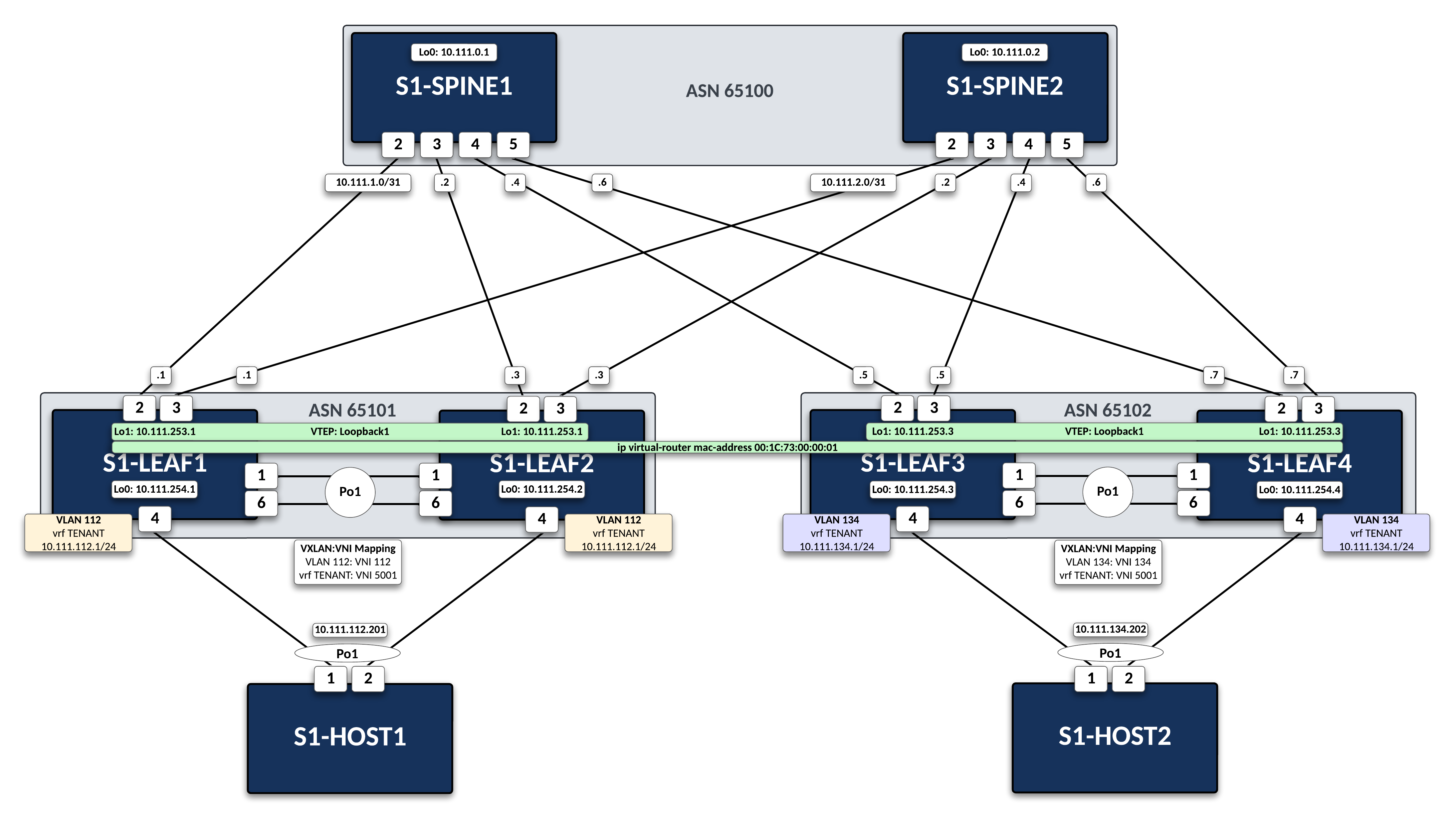 L2EVPN_s1-spine1,L2EVPN_s1-spine2,L2EVPN_s1-leaf1,L2EVPN_s1-leaf2,L2EVPN_s1-leaf3, andL2EVPN_s1-leaf4. -