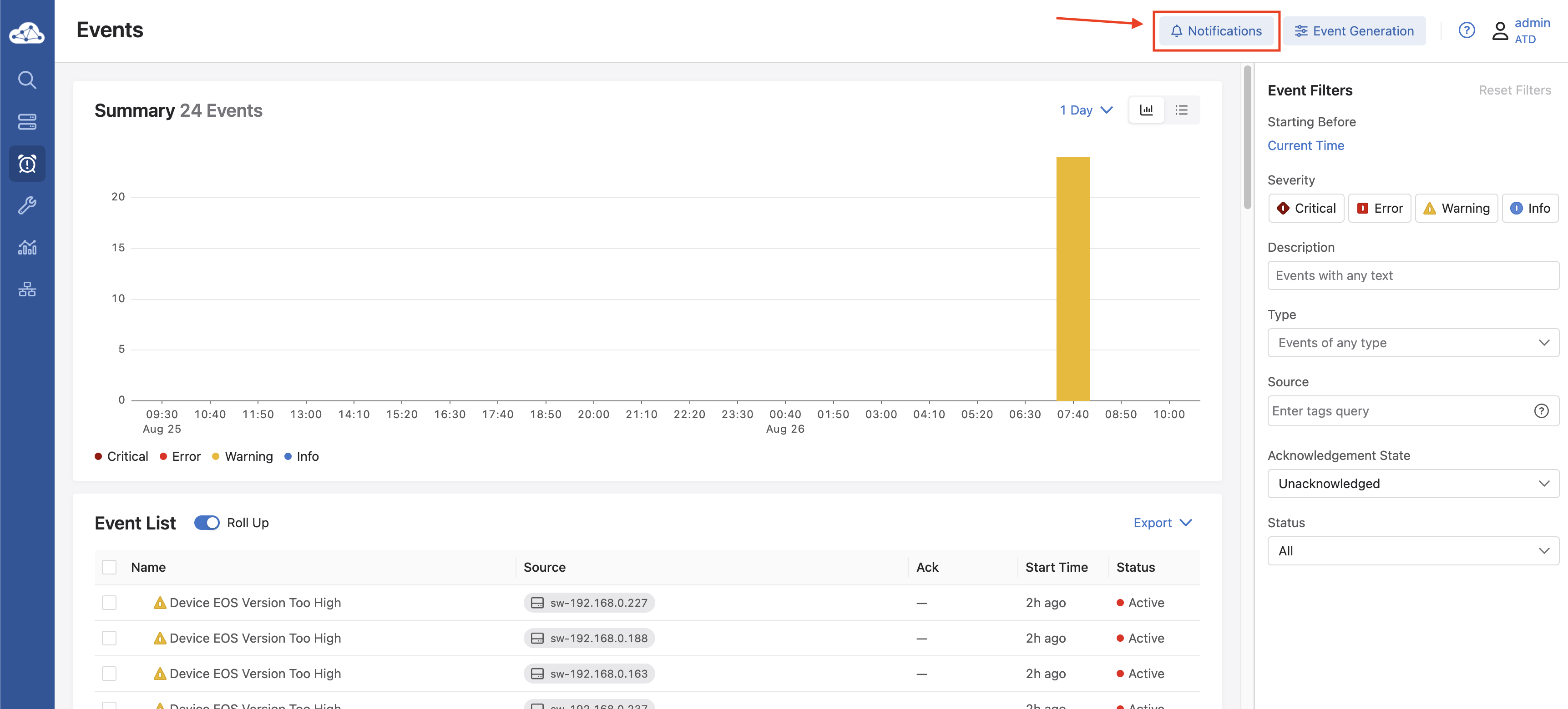 severity, andevent type, anydevice, anyinterface, and then click Send Test Notification. -