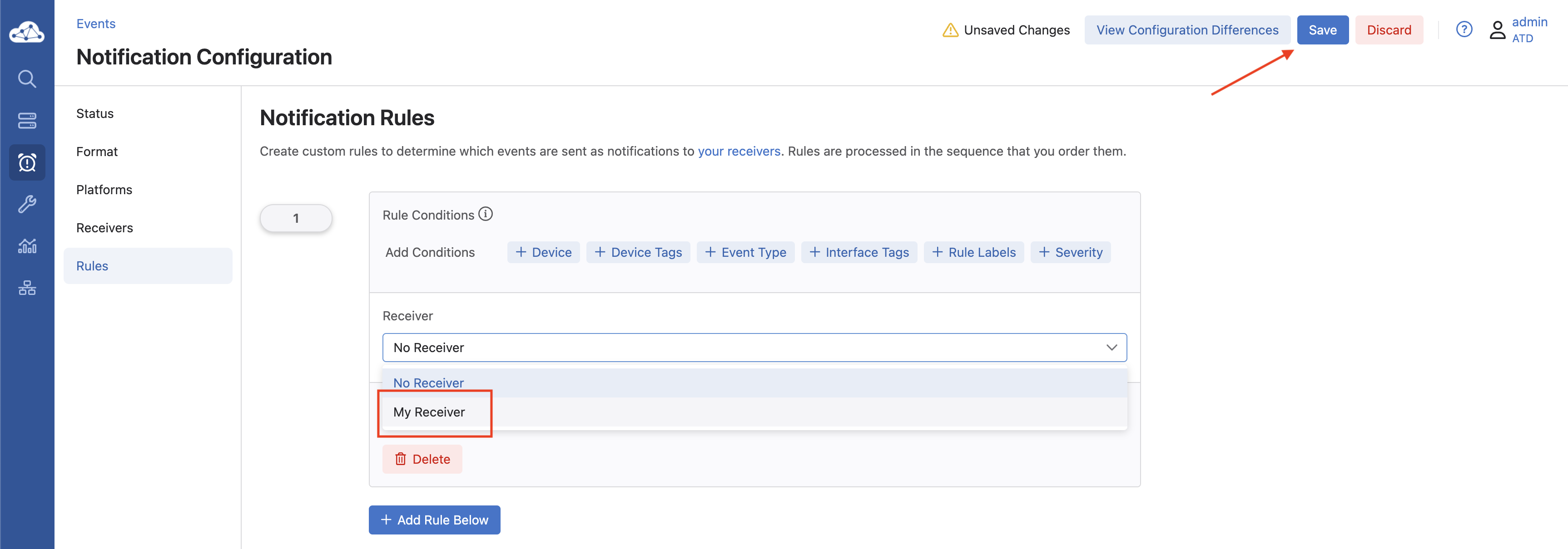 Now click on + Add Receiver and name it